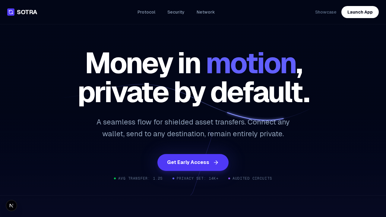 Credibility through typographic hierarchy and motion. High-contrast design emphasizing speed, friction-less transfers, and the Cypherpunk ethos.