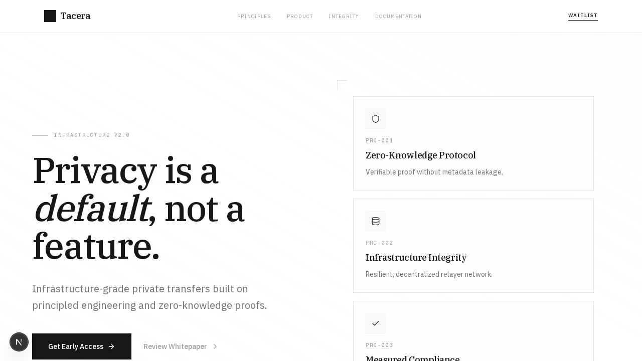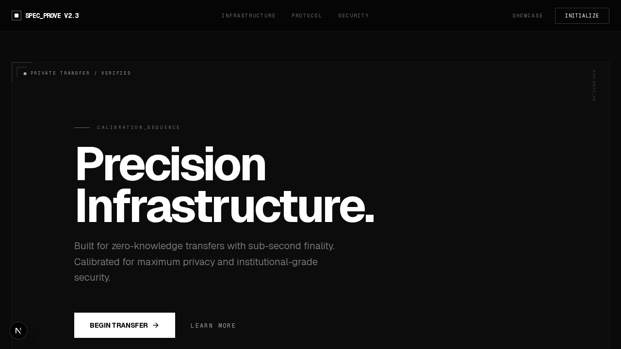 Infrastructure-grade private transfers built on principled engineering. A clean, high-integrity design focused on core constraints and quiet efficiency.