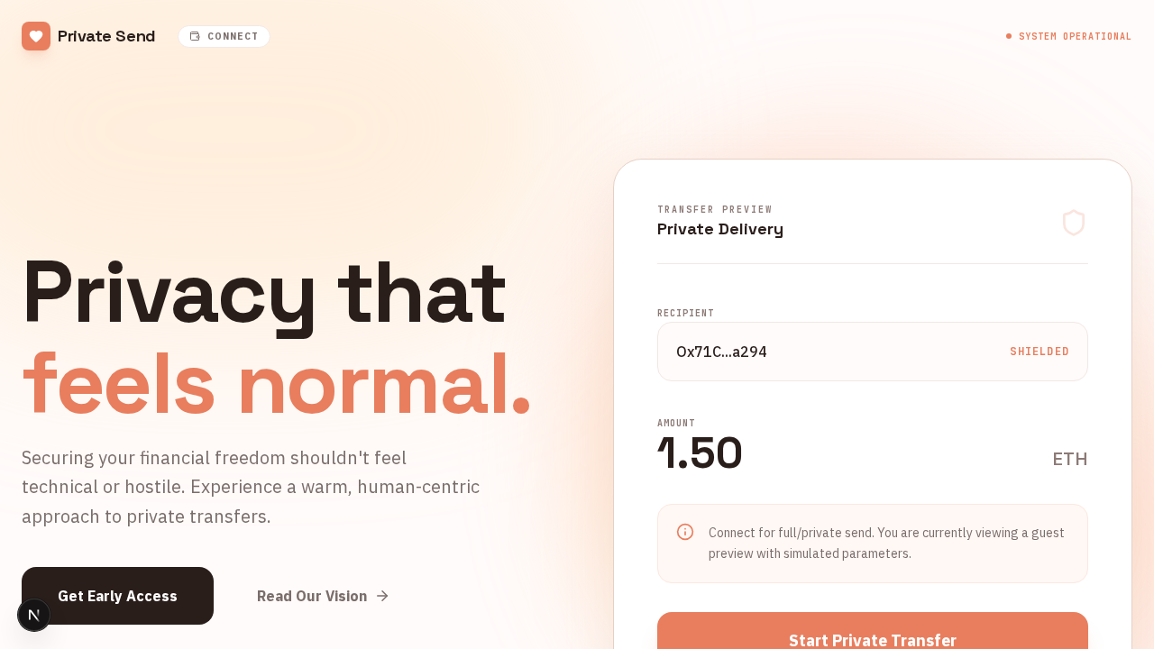 Privacy that feels human-centric. A soft, approachable aesthetic with warm tones, gentle animations, and a focus on trust and empathy.